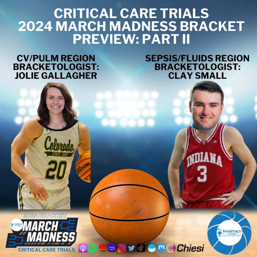 Jolie Gallagher and Clay Small, 2 Bracketologists, breakdown and preview the Cardiac/Pulmonary and Sepsis/Fluids regions of the 2024 Critical Care Trials March Madness Bracket.