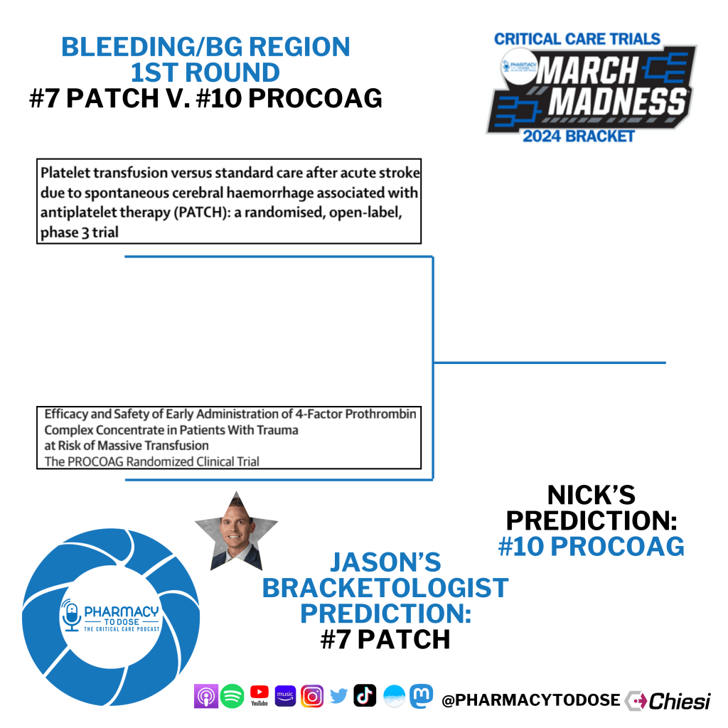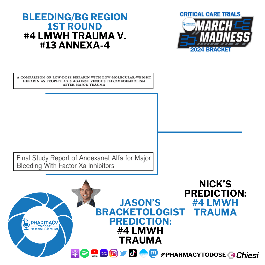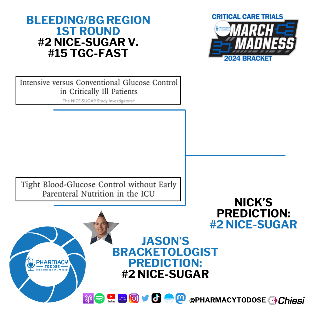 Now let’s preview all 8 matchups. Click the trial name to go to their PubMed page, but you can also browse the abstract screenshots as well as see who Jason Hecht, this region’s Bracketologist, and I predict will win.