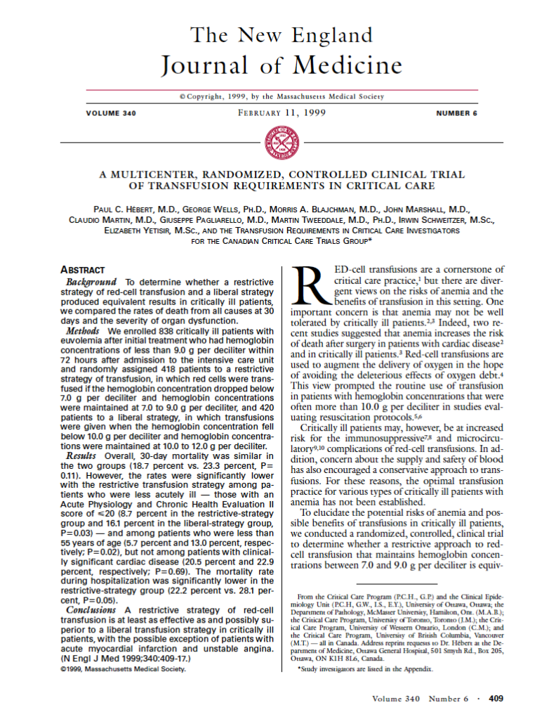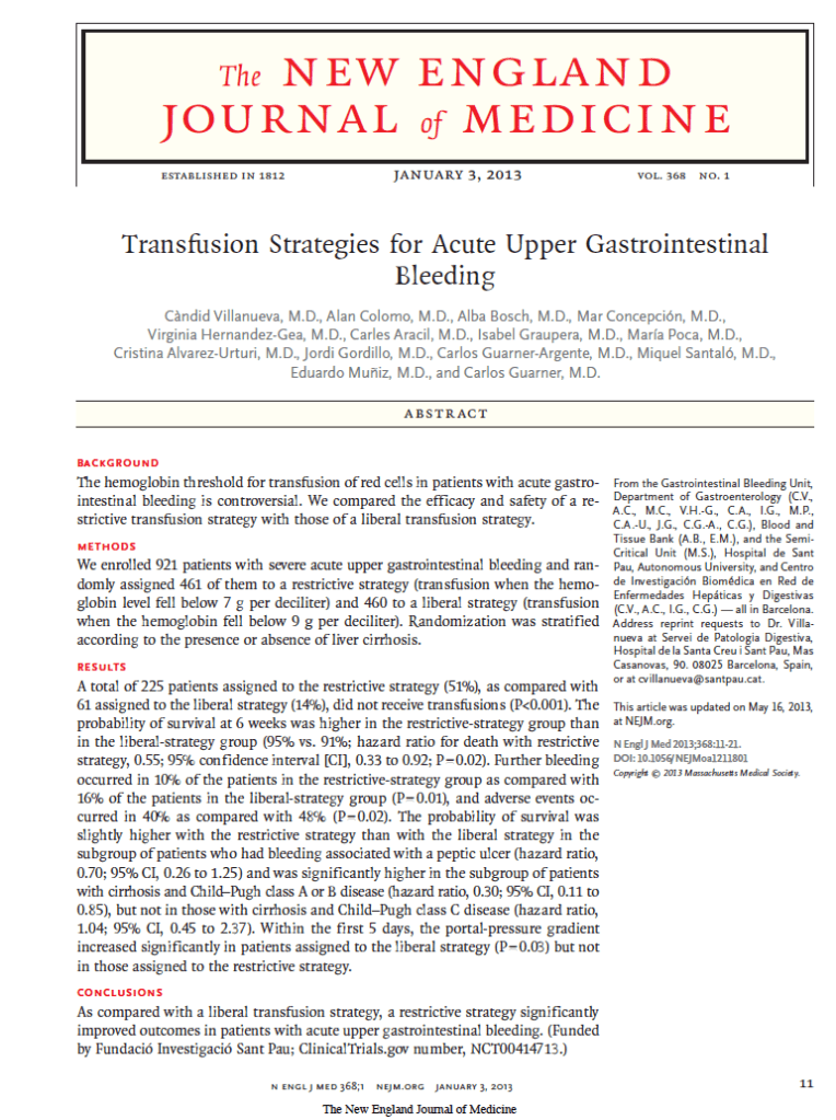 3. TRICC v. 14. UGIB Transfusion Goals