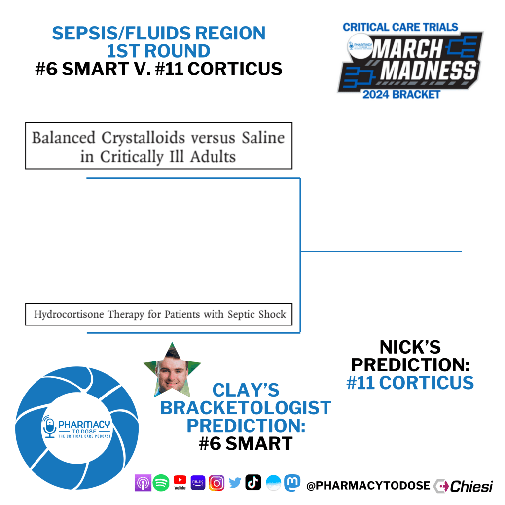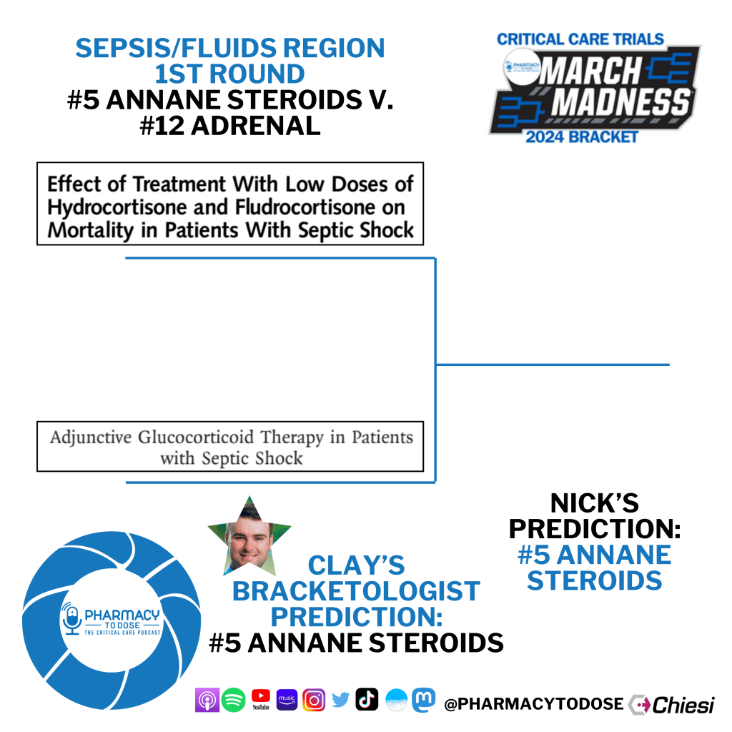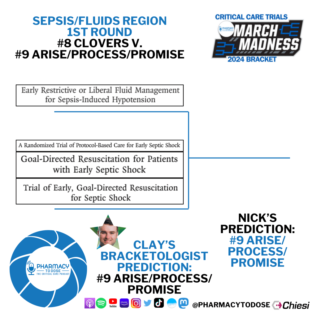 Now let’s preview all 8 matchups. Click the trial name to go to their PubMed page, but you can also browse the abstract screenshots as well as see who Clay Small, this region’s Bracketologist, and I predict will win.