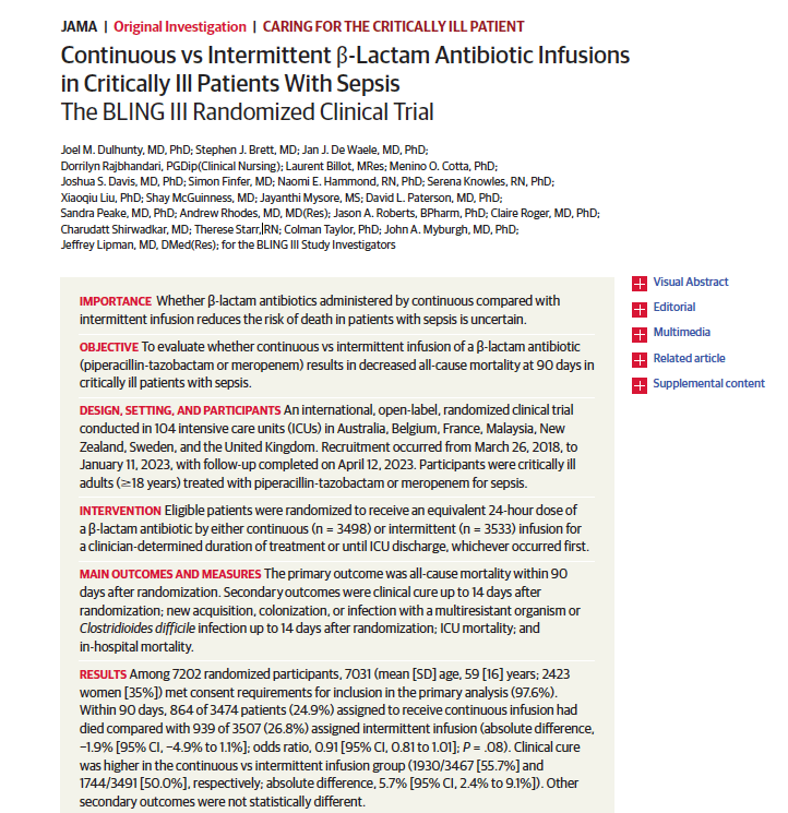 Then Jason and I review the study design and findings from this JAMA study. How do we compare these findings to the SR/MA? How were the antibiotics chosen? Can we apply these findings to extended-interval dosing or just continuous infusion?