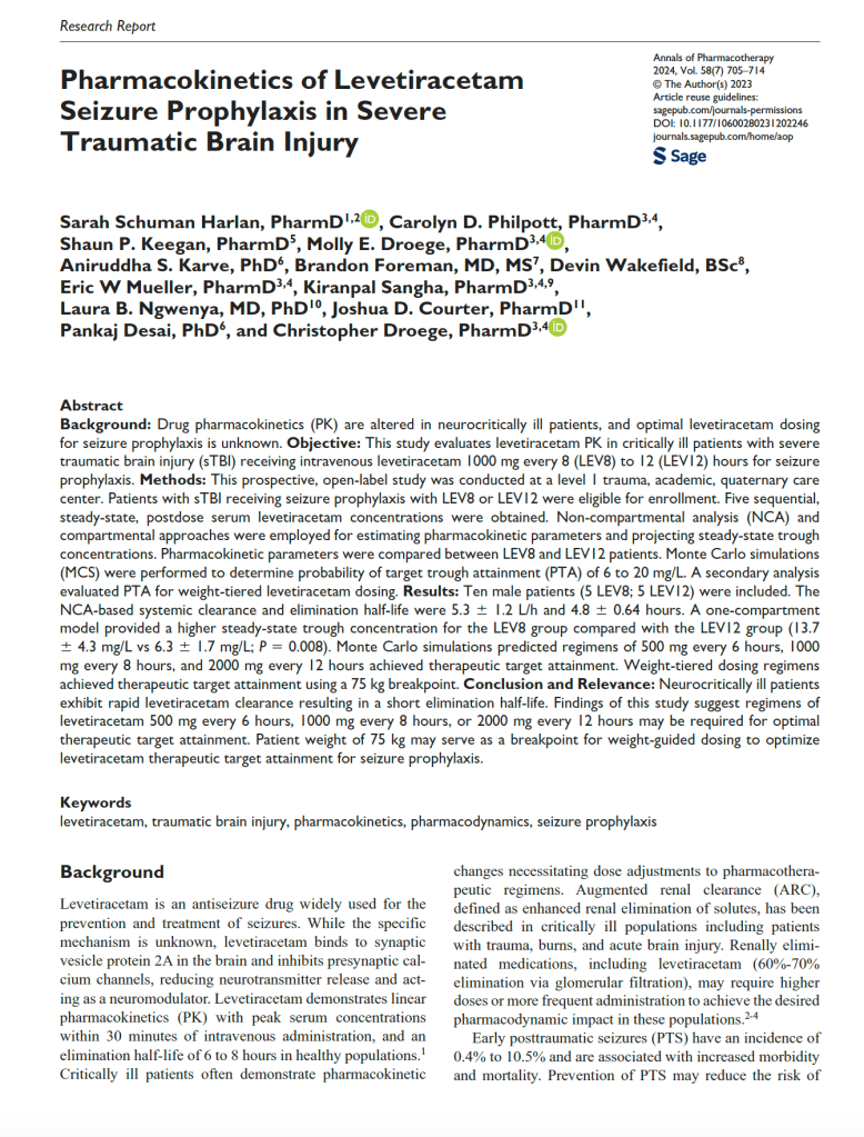 Levetiracetam PK for seizure prophylaxis in severe TBI