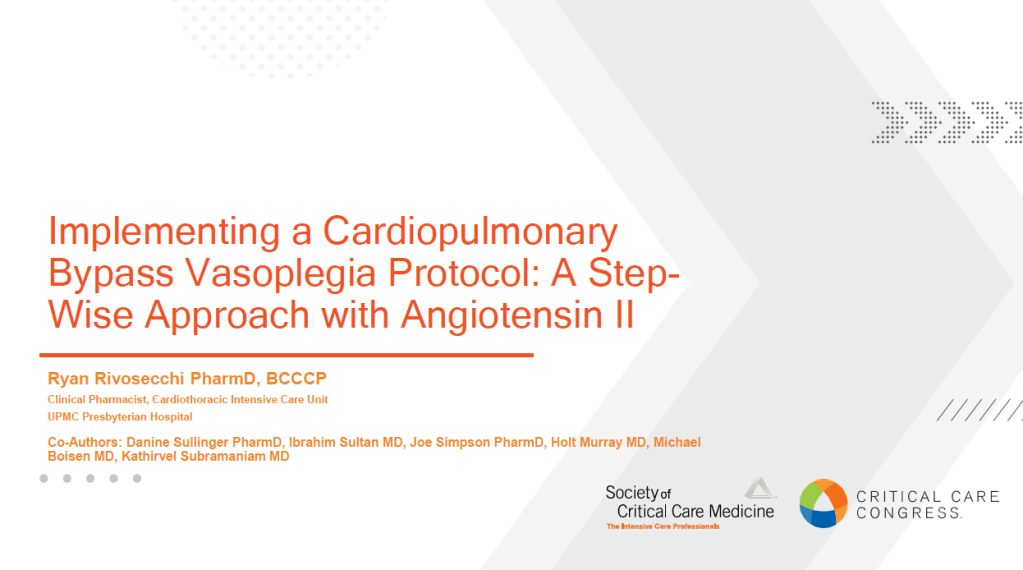 “Implementing a Cardiopulmonary Bypass Vasoplegia Protocol: A Step-Wise Approach with Angiotensin II” ft. Ryan Rivosecchi, PharmD, BCCCP