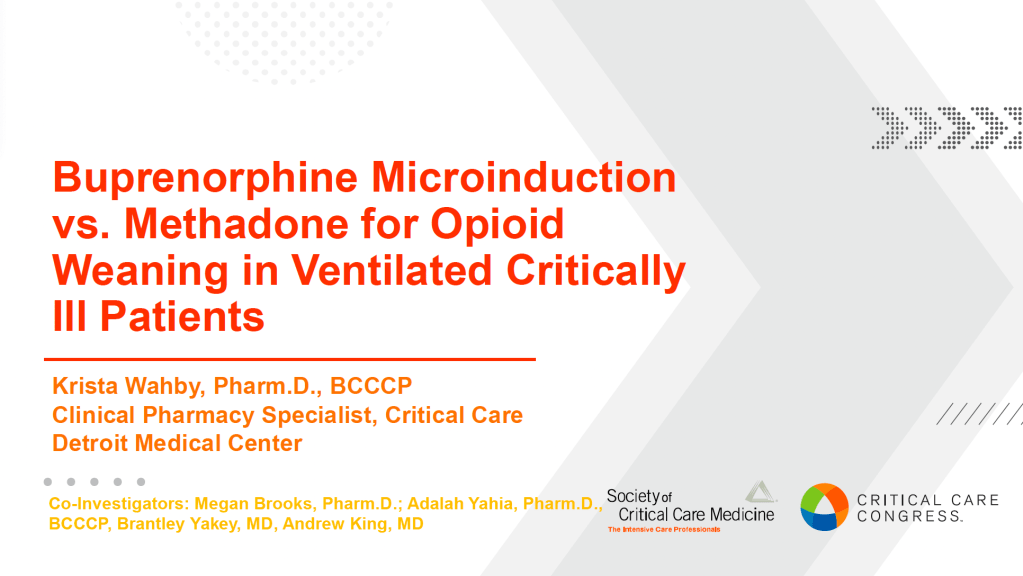 “Buprenorphine Microinduction vs. Methadone for Opioid Weaning in Ventilated Critically Ill Patients” ft. Krista Wahby, PharmD, BCCCP