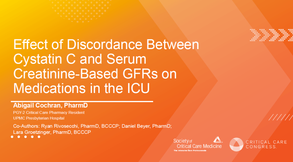 “Effect of Discordance Between Cystatin C and Serum Creatinine-Based GFRs on Medications in the ICU” ft. Abigail Cochran, PharmD