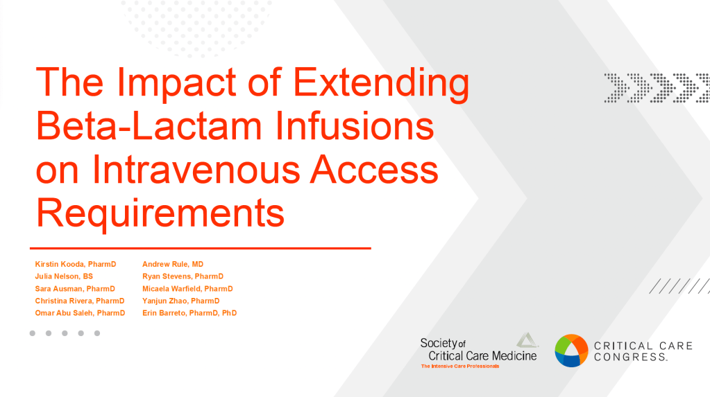 “The Impact of Extending Beta-Lactam Infusions on Intravenous Access Requirements” ft. Kirstin Kooda, PharmD, BCCCP, BCPS, BCIDP, FCCM