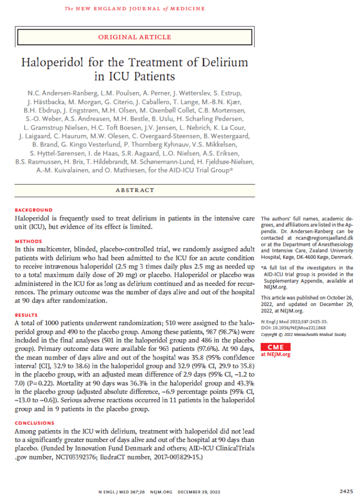 #11 AID-ICU “Haloperidol for the treatment of delirium in ICU patients”