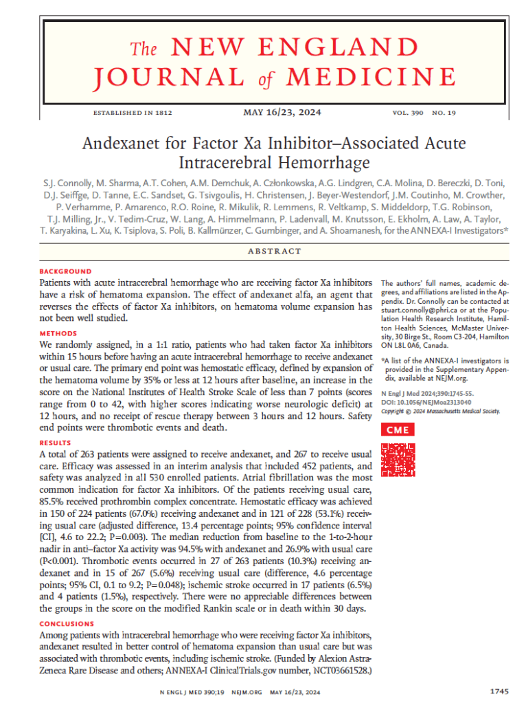 #15 ANNEXA-I “Andexanet for factor xa inhibitor-associated acute intracerebral hemorrhage”
