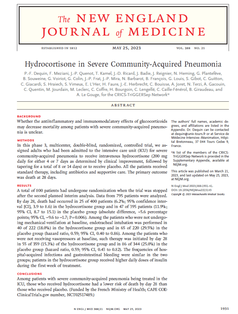 #4 CAPE COD “Hydrocortisone in severe community-acquired pneumonia”