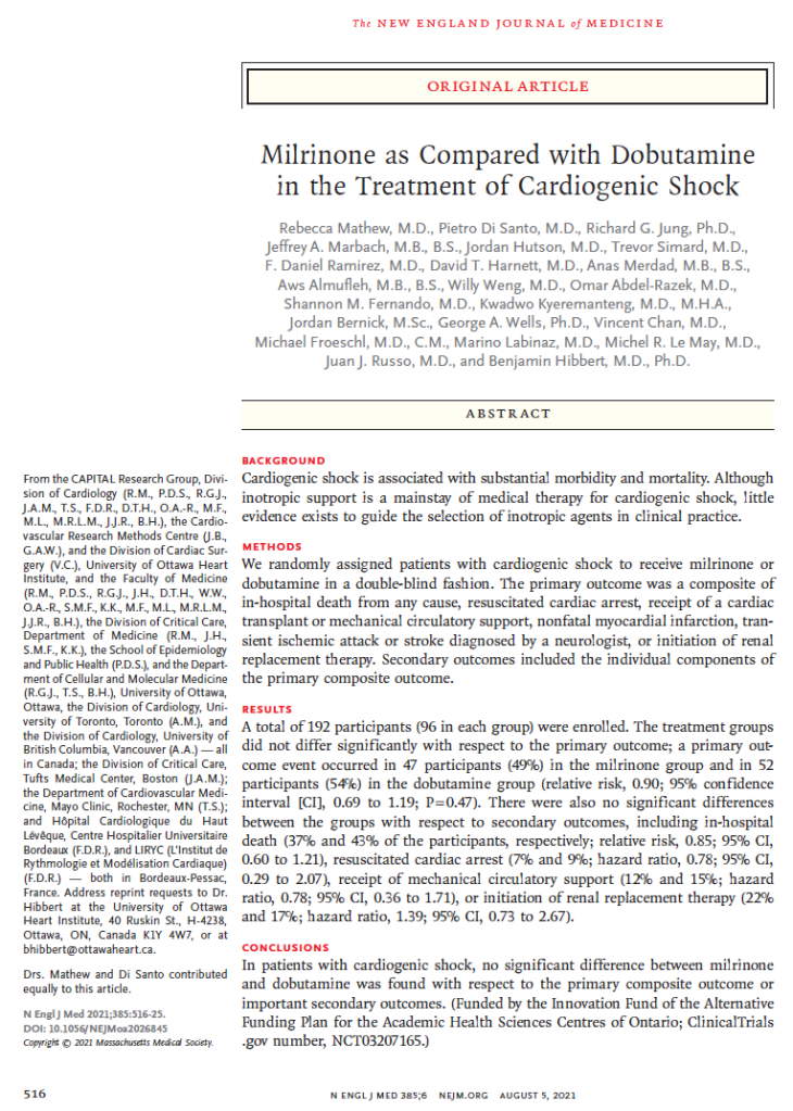 #10 DOREMI “Milrinone as compared with dobutamine in the treatment of cardiogenic shock”