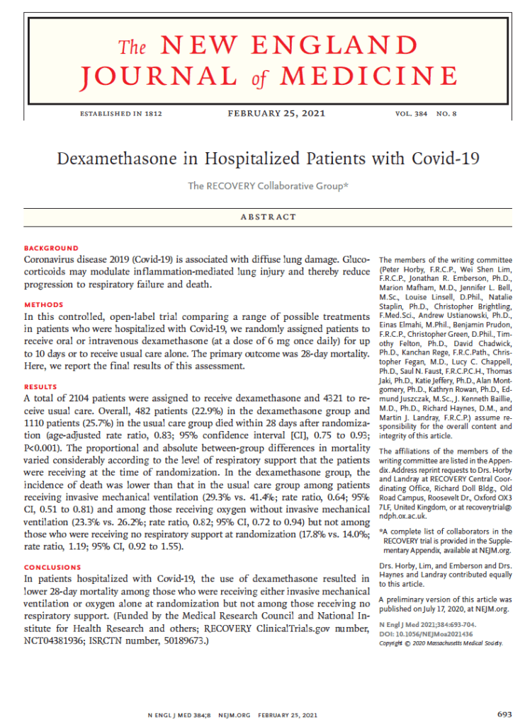 #1 RECOVERY “Dexamethasone in hospitalized patients with covid-19”