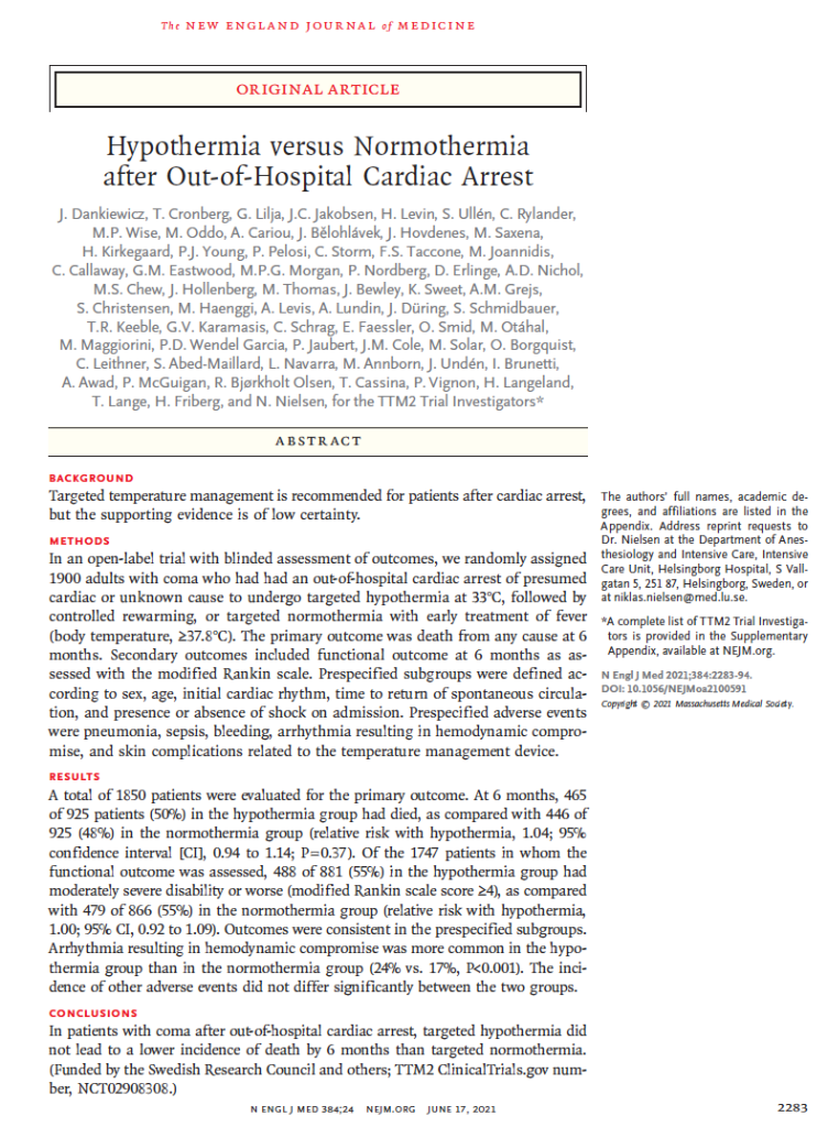 #13 TTM2 “Hypothermia versus normothermia after out-of-hospital cardiac arrest”
